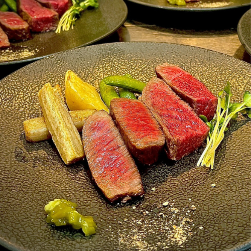 Kenの料理の中心にあるのは、その時もっとも状態の良い国産牛。仕入れから丁寧に見極め、旨味・香り・食感が際立つ部位を選び抜いています。